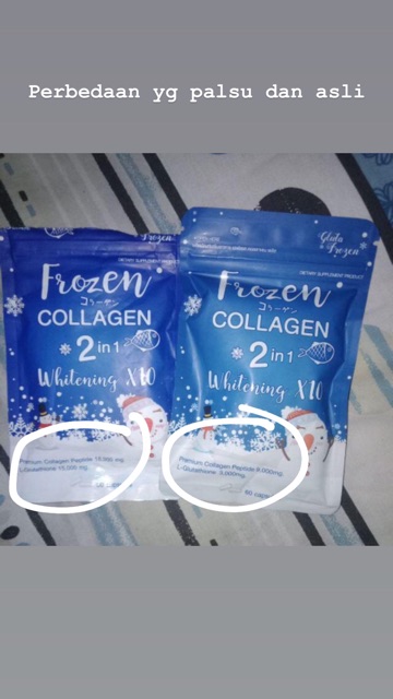 Manfaat frozen collagen dan frozen detox. Palsu dan tidak original,kami hanya menjual produk terbaik dan asli,kami . Zat ini sangat penting dalam . Perbedaan frozen collagen asli dan palsu ciri ciri gluta frozen asli dan. Whitening collagen 2 in 1 frozen 60 kapsul suplemen pemutih tanpa efek samping.